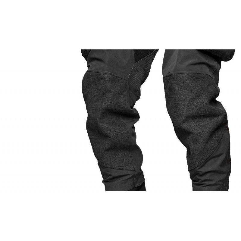 - Wzmocnienia z Cordury® i Kevlar® – Skafander posiada dodatkowe wzmocnienia w newralgicznych miejscach, takich jak kolana, krok i siedzenie. Materiały takie jak Cordura® i Kevlar® zapewniają wyjątkową trwałość skafandra, nawet w trudnych warunkach.
