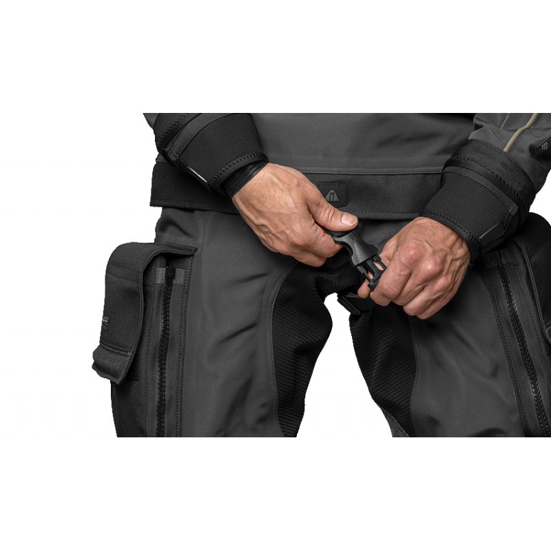 - Kieszenie Power Pocket – Wytrzymałe, rozszerzalne kieszenie zapinane na zamek, umożliwiające przechowywanie akcesoriów nurkowych. Dzięki dużej pojemności są niezwykle praktyczne.